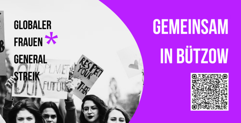 Was wäre, wenn ein Teil unserer Stadt einfach stillstehen würde? Wenn Sorgearbeit, Pflege, Organisation plötzlich fehlen würden? Genau darauf macht der Frauen*streik aufmerksam und Bützow ist am 9. März 2026 dabei.
